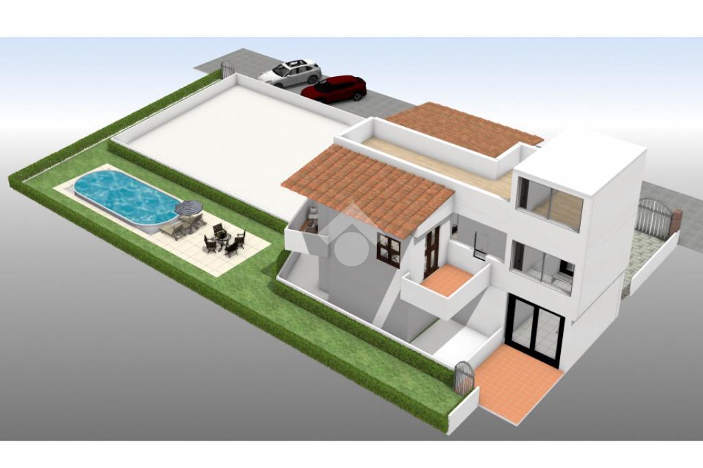 PARCO ROSA - nei pressi della spiaggia di Case del Conte - disponiamo in vendita di una porzione di bifamiliare con giardino e piscina privata. L'abitazione, ubicata al primo piano, ha una superficie di mq 70 ed è composta da ingresso, soggiorno con angolo cottura con annessi un terrazzo a servizio della cucina e un terrazzo a servizio del soggiorno, tre camere da letto che si affacciano su altro terrazzo e un bagno. Completa la proprietà un solarium soprastante l'appartamento di circa mq 35 e il giardino di esclusiva proprietà di circa mq 200 con all'interno una piscina larga mt 4 e lunga mt 9. La villetta è stata di recente ristrutturata nella parte esterna mentre gli interni sono quelli originari degli anni '80 e si presentano in buono stato di manutenzione.