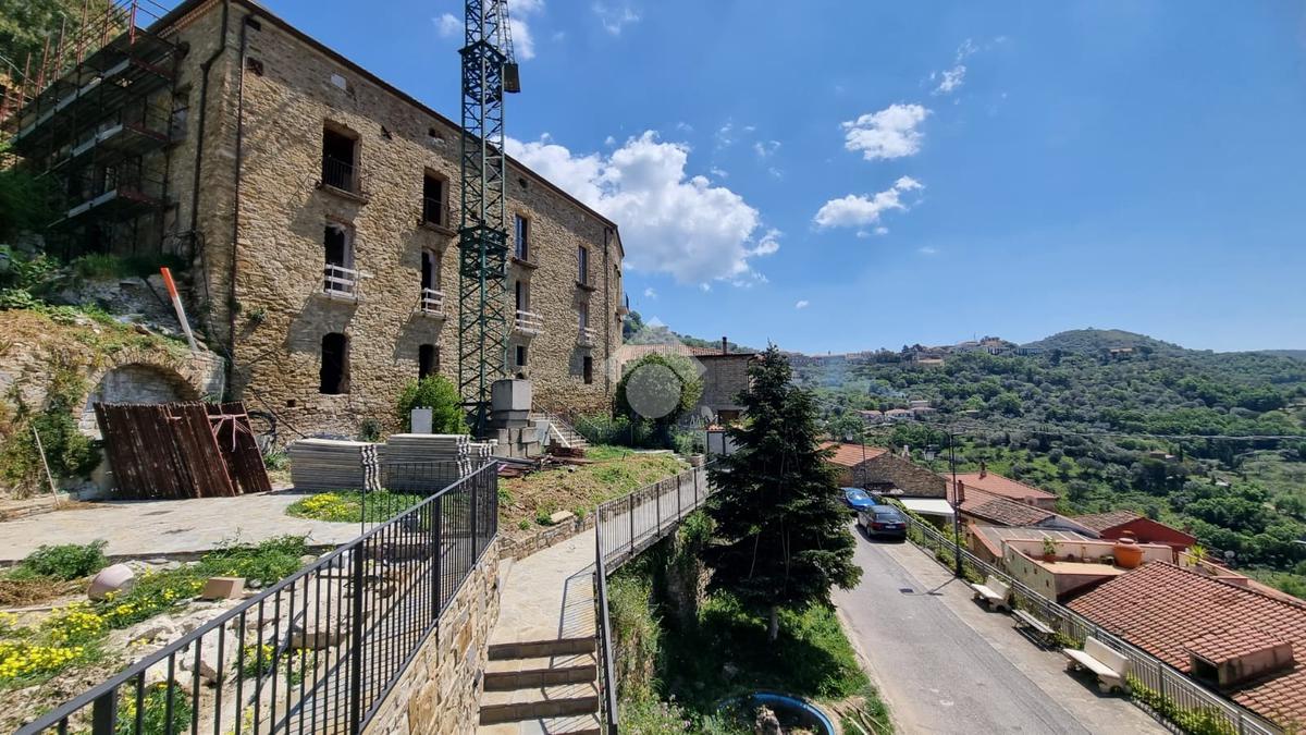 Nel borgo storico di Fornelli, in splendida posizione panoramica sul mare di Acciaroli, e a pochi minuti dalla spiaggia di Agnone, proponiamo in vendita un appartamento in un fabbricato gentilizio settecentesco in via di restauro, con giardino e piscina condominiale. Si tratta di un antico edificio a corte in pietra, ricco di elementi caratteristici realizzati tra il '700 e l'800, in particolare una torre, una colombaia, il cortile con un pozzo e una scala dai vari elementi in pietra elegantemente scolpiti, cornici a porte e balconi in pietra. Il giardino, su tre terrazzi, domina la piccola piazza e la chiesa del villaggio. I suoi prospetti sud-ovest e nord-ovest, sono aperti sui versanti collinari minuziosamente coltivati e sul magnifico sfondo del mar Tirreno, per un arco di costa che va da Acciaroli alle marine di Castellabate, in pieno territorio cilentano Patrimonio dell'Umanità secondo l'Unesco. Il progetto di restauro-ristrutturazione, approvato anche dal Ministero dei Beni Culturali e dal Parco Nazionale del Cilento, prevede tra l'altro che il restauro venga eseguito in modo da non alterare la loro relazione col contesto paesistico e che gli elementi di interesse come torre, pozzo, componenti in pietra vengano scrupolosamente conservati o ripristinati, così come tutti i solai vengano rifatti in legno lasciato a vista nella faccia inferiore.