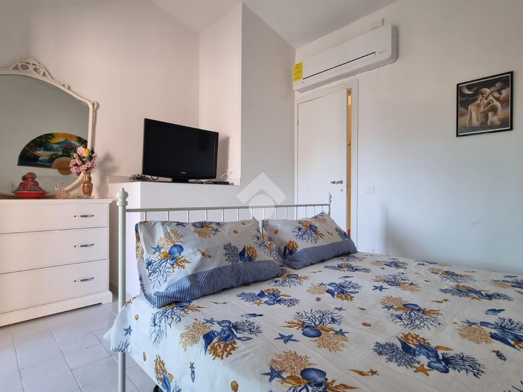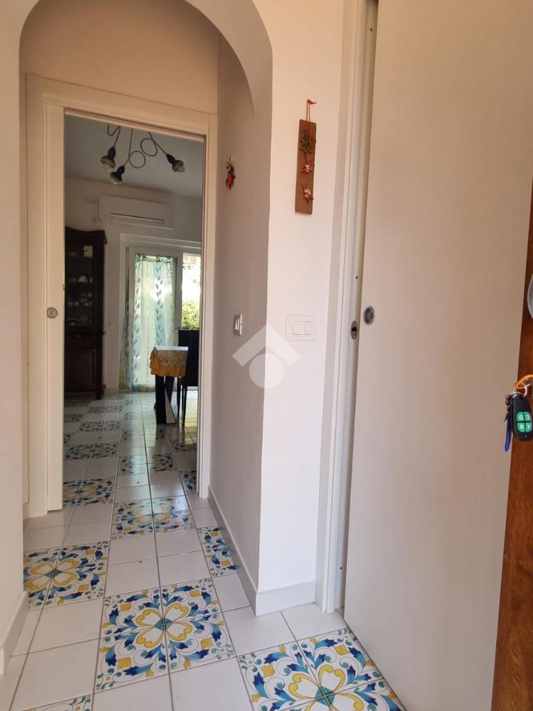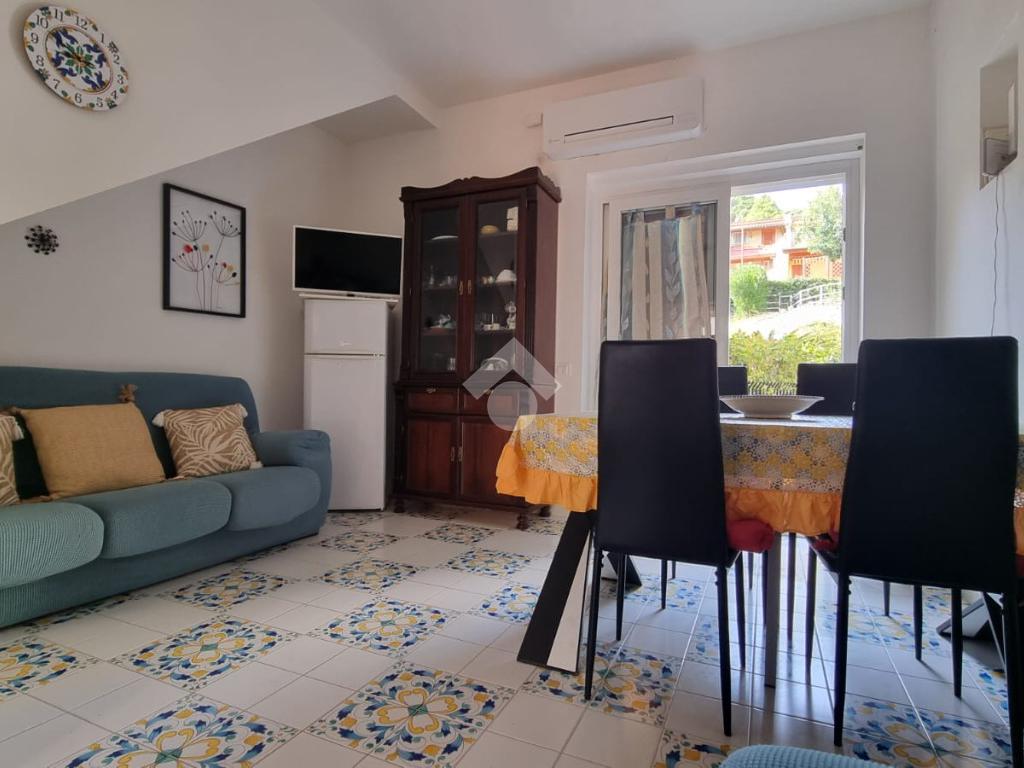 All'interno di un parco privato ubicato a ridosso del porticciolo della località di San Nicola a Mare, proponiamo in vendita un immobile signorile su due livelli recentemente ristrutturato di circa 48 mq con un posto auto riservato di proprietà. Questa soluzione abitativa ha un ingresso indipendente che conduce a spazi ben distribuiti. Al piano terra, un'accogliente zona giorno che può ospitare due posti letto, si apre su due corti private pavimentate di circa 55 mq, ideali per momenti di relax in tranquillità e privacy . A servizio della stessa sono presenti un comodo bagno e un cucinino in muratura con piano cottura ad induzione. La camera da letto, situata al piano superiore, è servita da un bagno moderno con doccia e da un terrazzo a livello coperto di circa 8 mq. L'immobile dispone di un impianto di condizionamento caldo-freddo con fan coil, doppi infissi in legno e alluminio con vetro camera, cappotto termico, copertura coibentata e portone d'ingresso blindato. La prestazione energetica dell'immobile è ottimale, inoltre, i pannelli fotovoltaici e la pompa di calore assicurano comfort e risparmio. La vicinanza al mare, a pochi metri di distanza, rappresenta un ulteriore vantaggio. Questo immobile è una scelta ideale per chi cerca qualità e posizione.