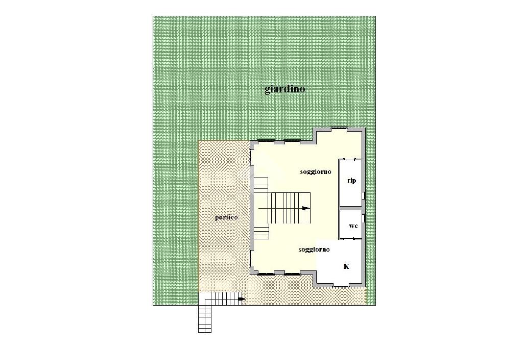 Un patio, coperto da tettoia, di circa mq 40, è a servizio della zona giorno mentre tutta l'area esterna ha una superficie di circa 1200 mq e si alterna con aree adibite al parcheggio delle auto e aree pavimentate o adibite al verde che garantiscono il relax all'aperto.